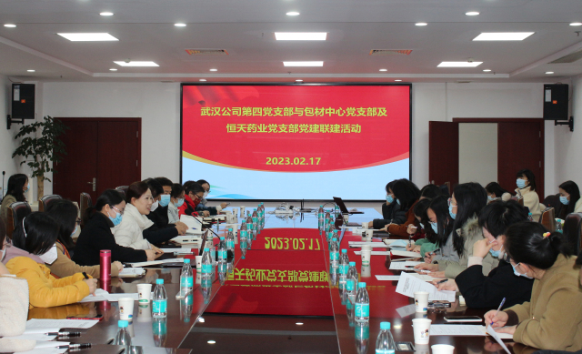 為“提服務(wù)、促發(fā)展、創(chuàng)品牌”,2月17日,武漢生物制品研究所第四黨支部聯(lián)合湖北省藥品監(jiān)督檢驗(yàn)研究院包材中心黨支部和應(yīng)城市恒天藥業(yè)包裝有限公司黨支部開展黨建聯(lián)建活動。包材中心、恒天藥業(yè)、公司第四黨支部和第十二黨支部黨書記、支委和黨員代表參加,湖北省藥檢院紀(jì)委書記徐琦作為支部黨員參加本次活動。