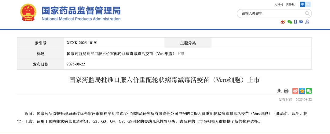 近日,國(guó)藥集團(tuán)中國(guó)生物武漢生物制品研究所研制的口服六價(jià)重配輪狀病毒減毒活疫苗(Vero細(xì)胞)(商品名:武生兒輪寶®)正式獲得國(guó)家藥品監(jiān)督管理局批準(zhǔn)上市。該產(chǎn)品是全球首款、價(jià)次最高的輪狀病毒疫苗,為我國(guó)預(yù)防用生物制品1類新藥,主要用于預(yù)防輪狀病毒引起的嬰幼兒急性胃腸炎。